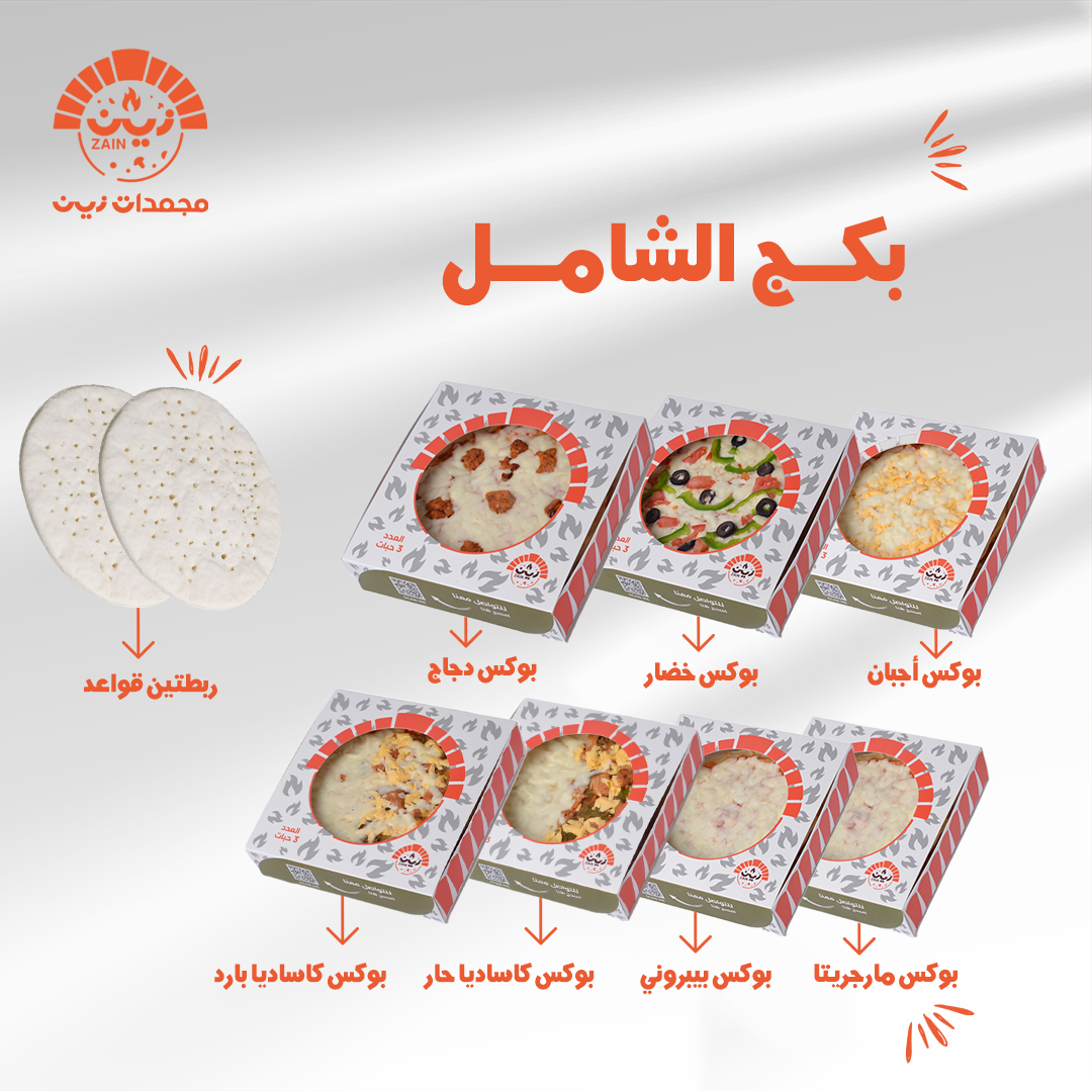 - البكج الشامل من زين المنتج للمجمدات يقدم لك تجربة طعام لا تُنسى بفضل تنوع النكهات والجودة العالية للمكونات و ستجد في هذا البكج كل ما تحتاجه لإشباع رغبتك في تناول بيتزا لذيذة وشهية.